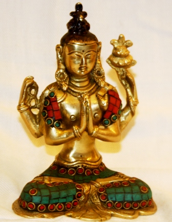 Avalokiteshvara Buddha : The Buddha of Love and Compassion also known as Chenrezig Buddha with four arms signifying the giving generosity of a Kind Buddha.