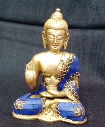 This gold brush brass idol is in the mudra of 'blessing' and will bring good luck and prosperity in the home.