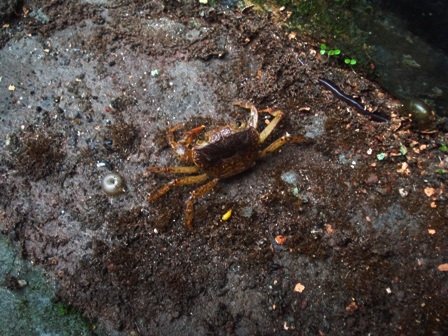 Dharamsala India..early monsoon allies in June. Crabby and Lucifer the snail discuss peace initiatives for Vidya Niwas pets.