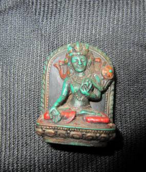 GIFT SERIES GREEN TARA IDOL, HAND CAST IN MULTI-TONED BRONZE.